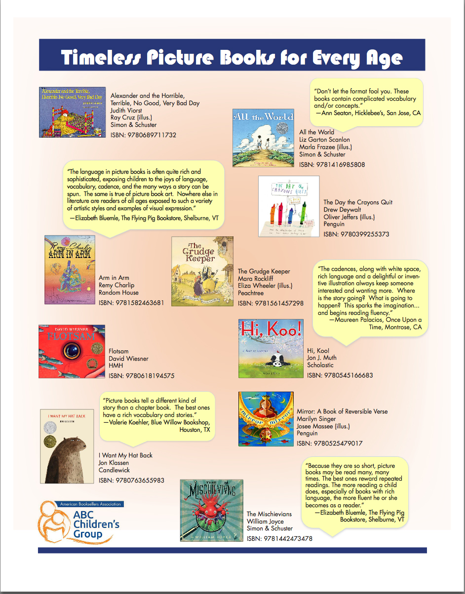 Recently, I wrote a blog post (Are We Rushing Kids Out of Picture Books?) about the way children are pushed toward chapter books at younger and younger ages. The topic struck a nerve; thoughtful comments poured in. Then at the ABC Children’s Institute in San Antonio earlier this month, I was on a panel discussing this topic (Selling Picture Books in the Wake of Age Compression) with several other children’s booksellers and librarians, and the room was overflowing and the conversation energetic. Clearly, this is a subject people feel passionate about!