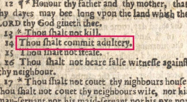 It turns out there is a 1631 edition of the King James Bible that gets the seventh commandment wrong. What should have read “Thou shalt not commit adultery” instead read “Thou shalt commit adultery,” This edition has since been dubbed the “Wicked Bible” for the slipup. Reportedly, only nine of these original editions exist today, as many were burned at the order of King Charles I.