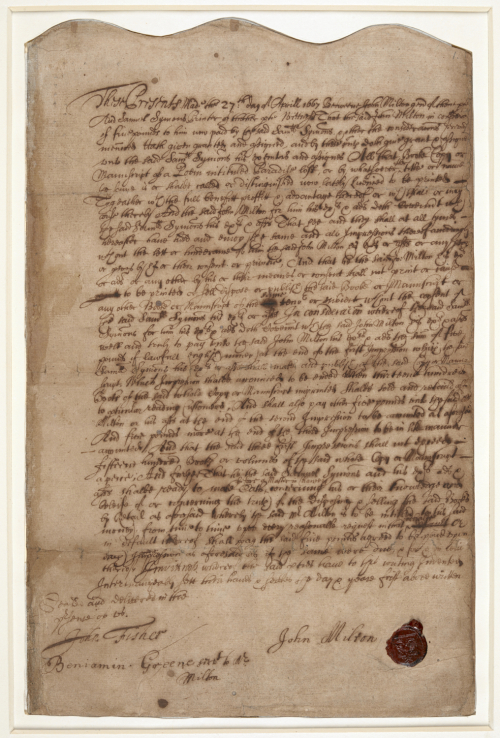 Check out John Milton’s publishing contract for Paradise Lost from 354 years ago, with his publisher Samuel Simmons held in the British Library.
